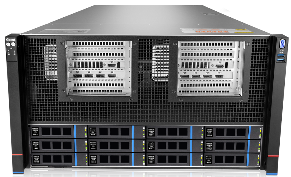 SYR6108G-D12R-G5是Gooxi基于AMD EPYC Turin平台开发的具有强大计算能力和超高弹性扩展能力的人工智能计算服务器,它支持2颗AMD EPYC Turin 9005系列处理器,兼容Genoa 9004系列处理器。可以支持CPU-GPU直连8张3.5宽GPU卡,支持PCIe5.0扩展插槽,满足各种AI业务场景下的应用需求;适用于人工智能、云游戏、虚拟化、大数据分析、数字孪生等应用场景;同时,6U风冷架构使该服务器具有存储容量大、扩展能力强、高可靠、易管理、易部署等优点。